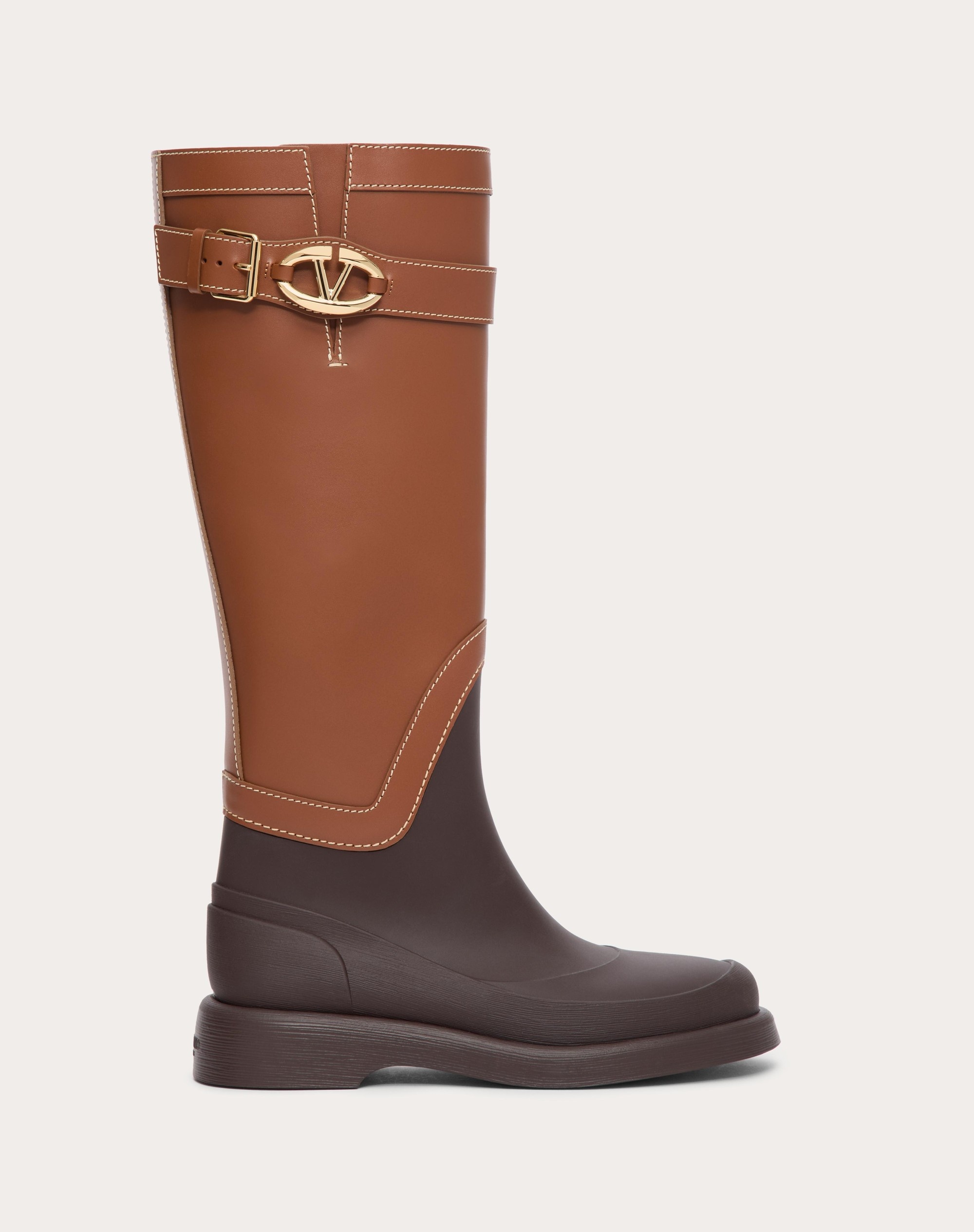 Valentino Garavani The Bold Edition VLogo rubber rain boot with calfskin shaft - Strap with VLogo Signature detail and light gold-tone finish buckle - Heel height: 35 mm / 1.4 in. - Boot shaft height: 39 cm / 15.4 in. in an Italian size 37 - Made in Italy Product code: 5W2S0JH7HEX_Z3B