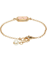 Rolo-chain bracelet in gold-tone brass. · Pink enameled logo plaque at face · Faux-pearl and logo charm at lobster clasp Supplier color: Ora/Rosa/Cream Brass. Made in Italy 252807F020004