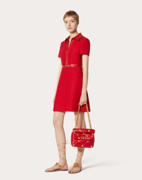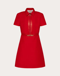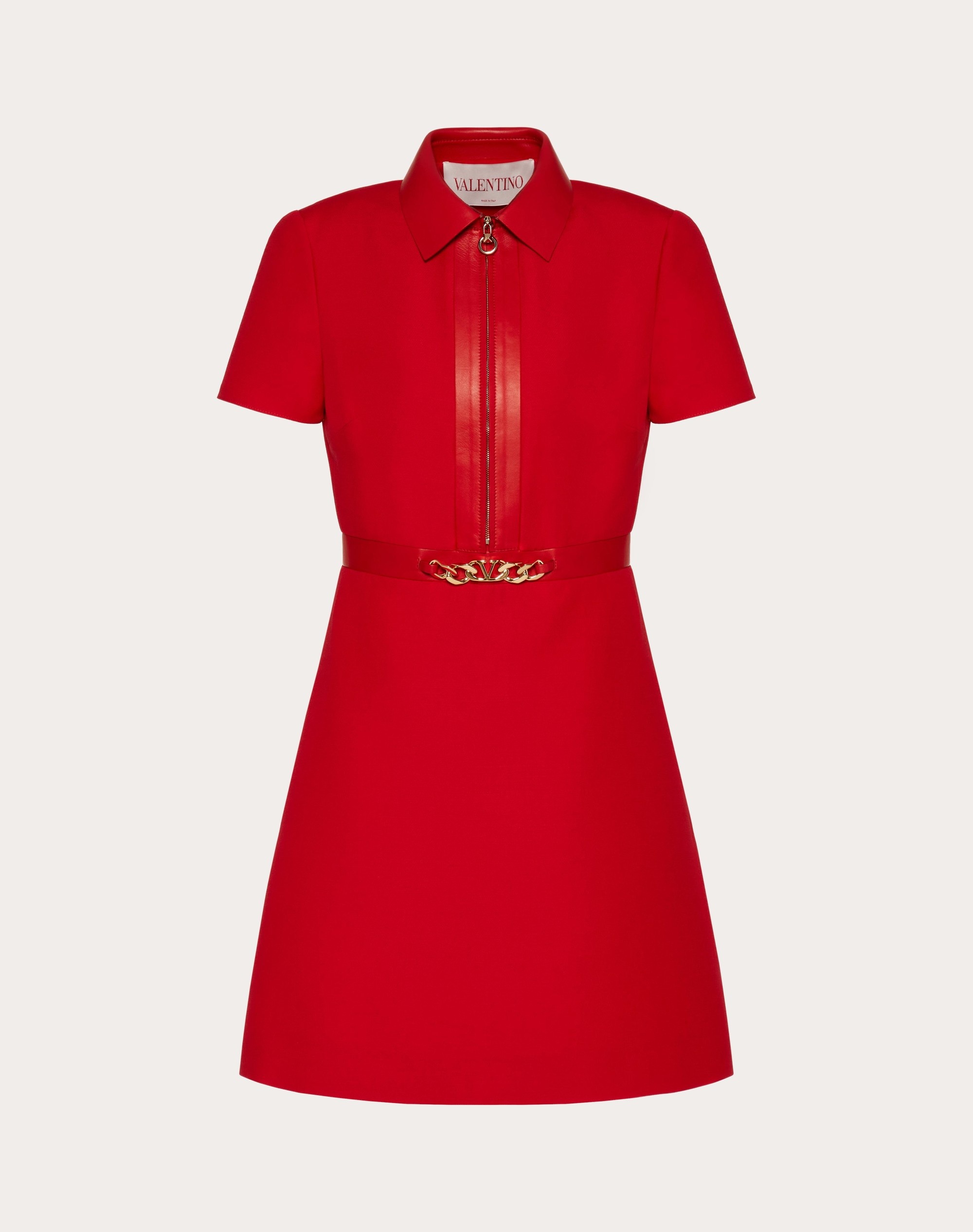 Crepe Couture VLogo Chain dress - Matching leather trim detail - VLogo Chain detail at the waist - Studded zip detail - Front zipper closure - Crepe Couture (65% Virgin Wool, 35% Silk) - Georgette Stretch lining (91% Viscose, 9% Elastane) - Length from shoulders: 90 cm / 35.4 in. in Italian size 40 - Sleeve length 40 cm / 15.7 in. from the center back in Italian size 40 The model is 176 cm / 5'9" tall and wears an Italian size 40 - Made in Italy Product Code BVAZR51CF_157