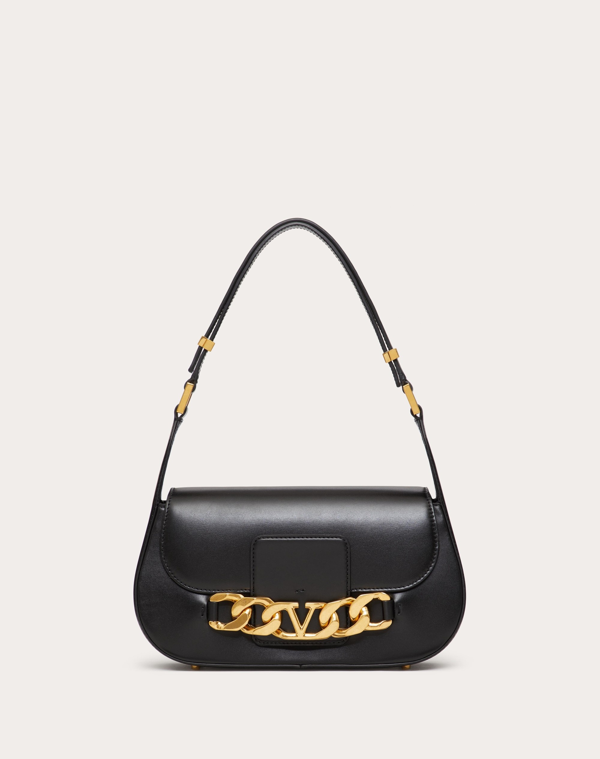Valentino Garavani VLogo Chain shoulder bag in calfskin. Metal chain featuring VLogo Signature element. - Antique brass-finish metal parts - Magnetic closure - Adjustable leather shoulder strap - Protective feet - Nappa leather lining. Interior: zipper pocket Shoulder strap drop length: 21 cm / 8.3 in. - Dimensions: W27xH15xD8 cm / W10.7xH5.9xD3.15 in. - Weight: 0.6 Kg / 1.3 lb - Made in Italy Product Code WB0K80ZHF_0NO