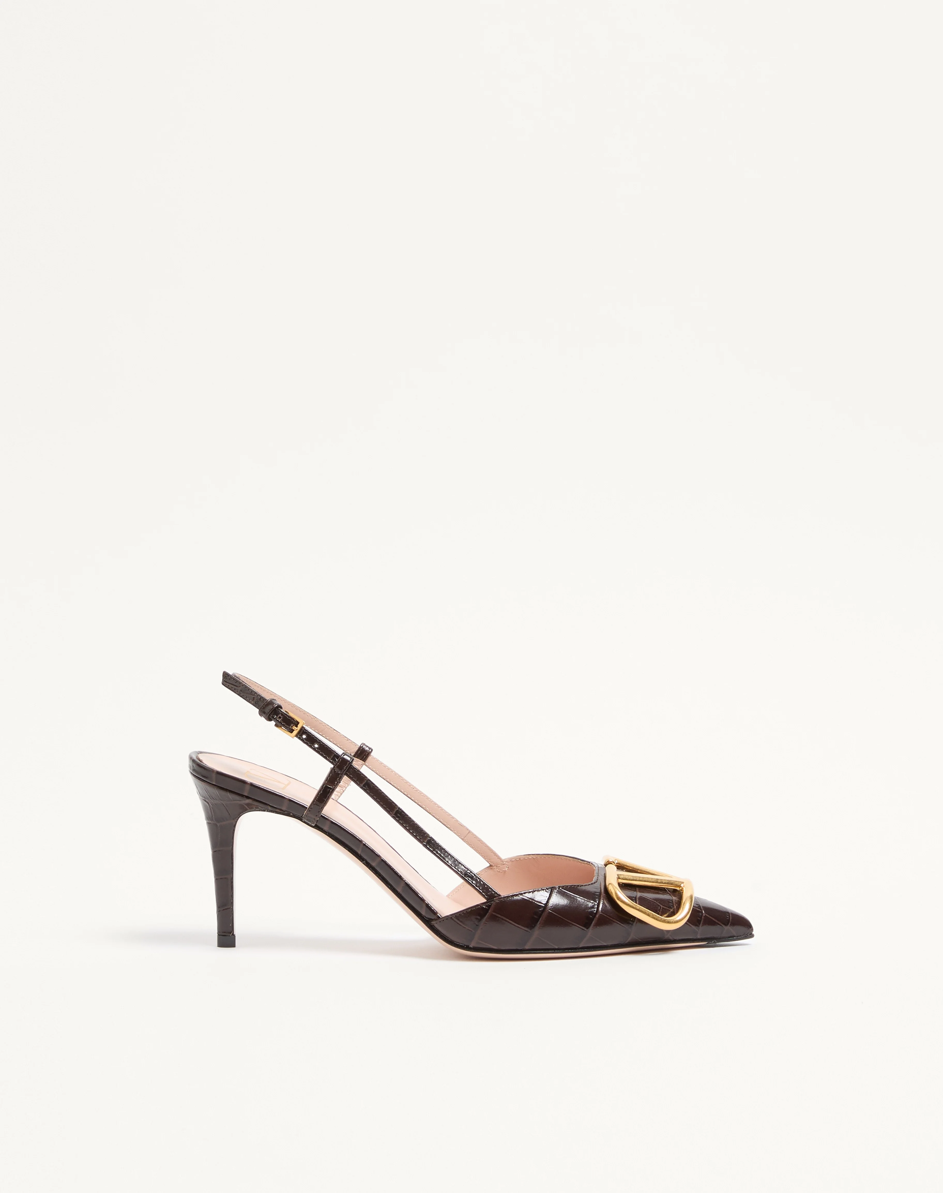 Valentino Garavani VLogo Signature Slingback Pump in crocodile-effect printed calfskin - VLogo Signature accessory with antique-effect brass finish - Heel height: 80 mm / 3.15 in. - Made in Italy Product code: 8W2S0R01LUR_REL