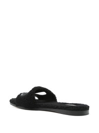 VLogo cut-out faux-shearling slides Highlights - Black - Square open toe - Leather and rubber sole Made in Italy Composition Lining: Calf Leather 100%, Fabric 100% Sole: Calf Leather 100% Outer: Fabric 100%, Calf Leather 100%