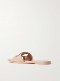 EDITORS'NOTES Valentino Garavani's 'VLOGO' slides will pair effortlessly with everything from midi dresses to relaxed tailoring and swimwear. Crafted from supple leather, they're topped with the brand's 'VLOGO' hardware at the cutout straps and lightly padded at the heel for comfort. SIZE & FIT - Fits true to size, take your normal size - Italian sizing DETAILS & CARE - Slight heel - Beige leather - Slip on