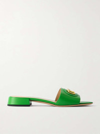 EDITORS'NOTES Valentino Garavani's slides are made from green leather that adds a striking element of color to both neutral and vibrant outfits. They're topped with the gold-tone 'VLogo' and have low block heels and subtly rounded square toes. SIZE & FIT - Fits true to size, take your normal size - Italian sizing DETAILS & CARE - Heel measures approximately 20mm/ 1 inch - Green leather (Calf) - Slip on