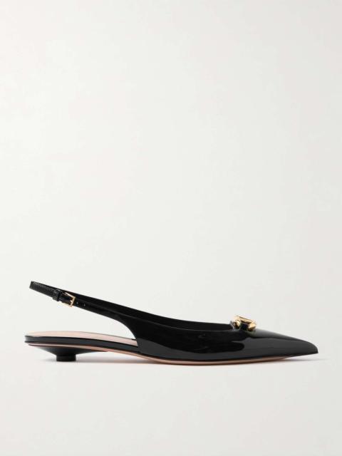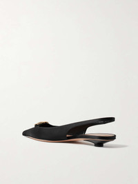 EDITORS'NOTES Valentino Garavani's ‘VLOGO’ pumps debuted on the Spring ’24 runway. Crafted from smooth satin, they rest on wearable 20mm heels and have elongated pointed toes topped with crystal-encrusted gold-tone 'VLOGO' hardware. Wear yours with everything from dresses to jeans. SIZE & FIT - Fits true to size, take your normal size - Italian sizing DETAILS & CARE - Heel measures approximately 20mm/ 1 inch - Black satin - Buckle-fastening slingback strap