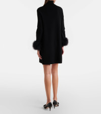 VLogo feather-trimmed turtleneck minidress