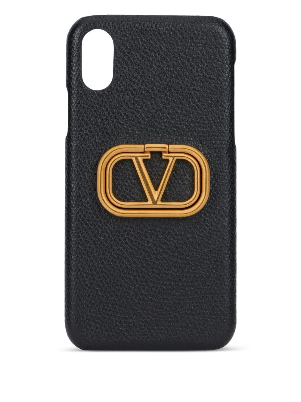 VLogo iPhone X case Highlights - Black - Leather - Textured finish - Gold-tone hardware Made in Italy Composition Calf Leather 100%