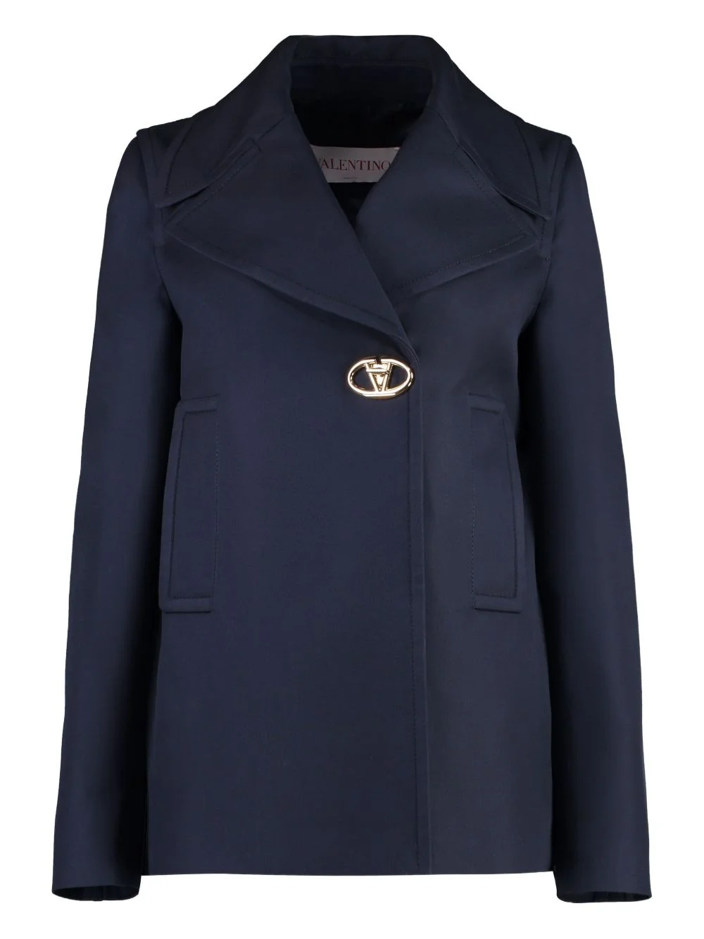 VLogo jacket Highlights - Navy blue - Stretch-cotton - Interlock twill weave - Turn-clasp fastening - Vlogo signature - Front press-stud fastening - Wide notch lapels - Long sleeves - Two front welt pockets - Central rear vent - Straight hem Made in Italy Composition Outer: Cotton 99%, Polyamide 1% Lining: Cupro 100% Washing instructions Dry Clean Only