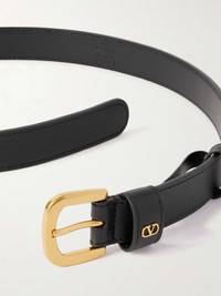 EDITORS'NOTES Valentino Garavani's belt is simply detailed with a tiny version of the label's signature 'VLogo' hardware along the loop. It's made from leather that'll get softer with wear and has a classic gold-tone buckle. SIZE & FIT - Designed to be worn on the hips or waist - Measurements can be found in the link below DETAILS & CARE - Black leather (Calf) - Buckle fastening