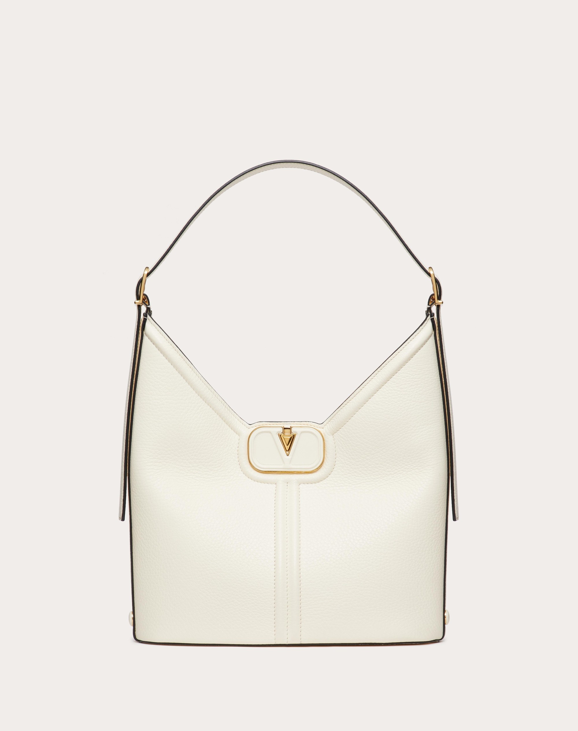 Valentino Garavani VLogo Leather hobo bag in grainy calfskin with VLogo Signature leather closure. The bag can worn over the shoulder thanks to the adjustable leather handle. - Gold-tone hardware - Magnetic interlocking closure - Leather lining. Interior: open slip pocket - Dimensions: W27xH30xD12 cm / W10.6xH11.8xD4.7 in. - Made in Italy Product code: 4W2B0N14LFN_098 Valentino Garavani VLogo Leather hobo bag in grainy calfskin with VLogo Signature leather closure. The bag can worn over the shoulder thanks to the adjustable leather handle. - Gold-tone hardware - Magnetic interlocking closure - Leather lining. Interior: open slip pocket - Dimensions: W27xH30xD12 cm / W10.6xH11.8xD4.7 in. - Made in Italy Product code: 4W2B0N14LFN_098
