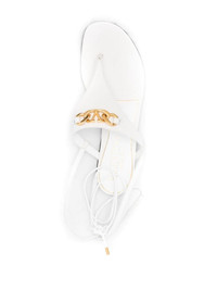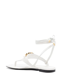 VLogo leather sandals Decorated with a gold-tone chain-link VLogo to its front, these white leather sandals by Valentino Garavani are complete with a tie-fastening ankle strap for a delicate completion. Made in Italy Composition Outer: Calf Leather 100% Lining: Calf Leather 100% Sole: Calf Leather 100% SIZE & FIT Measurement HEEL 0.59 in(1.5 cm)