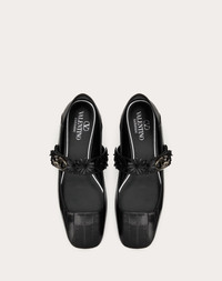Valentino Garavani VLogo Locker Mary-Jane ballerina in eel skin - Strap with embroidered flower applique in eel skin and VLogo Signature twist-lock closure in tone-on-tone finish - Strap with elastic insert - Collapsible heel in nappa leather - Heel height: 5 mm / 0.2 in. - Made in Italy Product code: 5W0S0JV2SJA_0NO