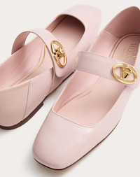 Valentino Garavani VLogo Locker Mary-Jane ballerina in naplack - Strap with VLogo Signature swivel lock in light gold finish - Strap with elastic insert - Collapsible nappa heel - Heel height: 5mm/0.25 in. - Made in Italy Product code: 5W2S0JV2RDA_16Q