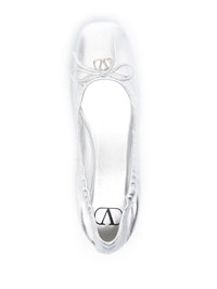 VLogo Signature ballet flats Highlights - Silver-tone - Calf leather - Grained texture - Metallic effect - Slip-on style - Elasticated trim - Vlogo signature - Bow detailing - Square toe - Branded leather insole - Leather lining - Flat rubber sole - This piece comes complete with a protective dust bag. Made in Italy Composition Sole: Rubber 100% Lining: Calf Leather 100% Outer: Calf Leather 100%
