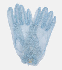 At once iconic and understated, Valentino's VLogo carries the Maison's legacy of elegance. These gloves are crafted from a sheer net fabric with a shimmering finish and feature the brand's signature emblem for a subtle, distinctive touch. Product Details - Material: 55% polyamide, 45% metallic fibres - Care instructions: dry clean - Made in Italy - Designer color name: Niagara/Oro - Item color: blue, silver - Item number: P01094056