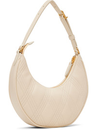 Quilted buffed lambskin shoulder bag. · Adjustable shoulder strap · Logo hardware at face · Zip closure · Card slot at interior · Nappa leather lining · H4.5"x W9" x D2" Supplier color: Butter white Lambskin. Made in Italy 252807F048011
