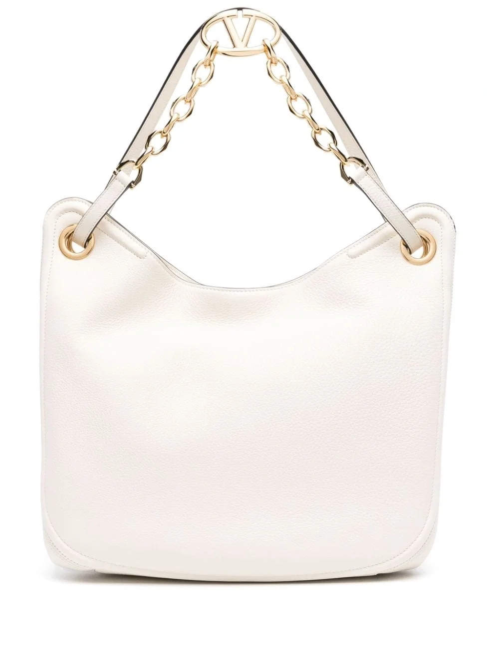 VLogo Moon leather tote bag Highlights - Ivory white - Calf leather - Pebbled texture - Vlogo signature chain-link detailing - Metal eyelet detailing - Concealed magnetic fastening - Sliding leather and chain-link shoulder strap - Main compartment - Internal logo stamp - Internal card slot - Leather lining - Gold-tone hardware Made in Italy Composition Outer: Calf Leather 100% SIZE & FIT Model measurements Height 5 ft 9 in(1.76 m) Bust/Chest 31.1 in(79 cm) Hips 36.61 in(93 cm) Waist 24.8 in(63 cm) Measurement DEPTH 4.13 in(10.5 cm) HANDLE 22.04 in(56 cm) HEIGHT 13.77 in(35 cm) WIDTH 16.53 in(42 cm)