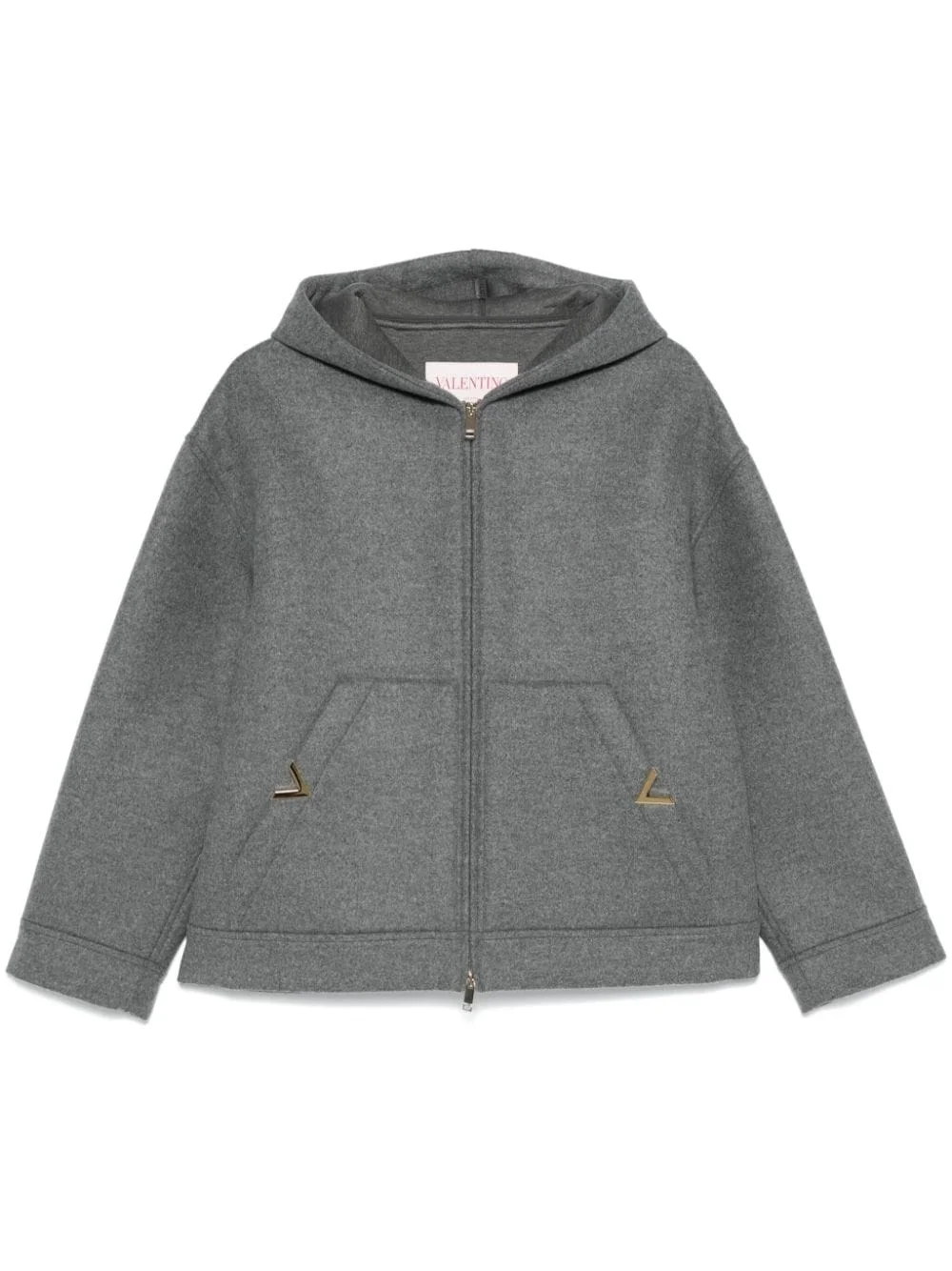 VLogo oversized jacket Highlights - Ash grey - Virgin wool - Vlogo signature - Front zip fastening - Classic hood - Two front pouch pockets - Long sleeves - Straight hem Made in Italy Composition Virgin Wool 100% SIZE & FIT Model measurements Height 5 ft 9 in(1.75 m) Bust/Chest 34.64 in(88 cm) Hips 36.61 in(93 cm) Waist 26.37 in(67 cm) FittingInformation Designed to be unstructured, offering a loose fit throughout Made from a midweight non-stretch fabric