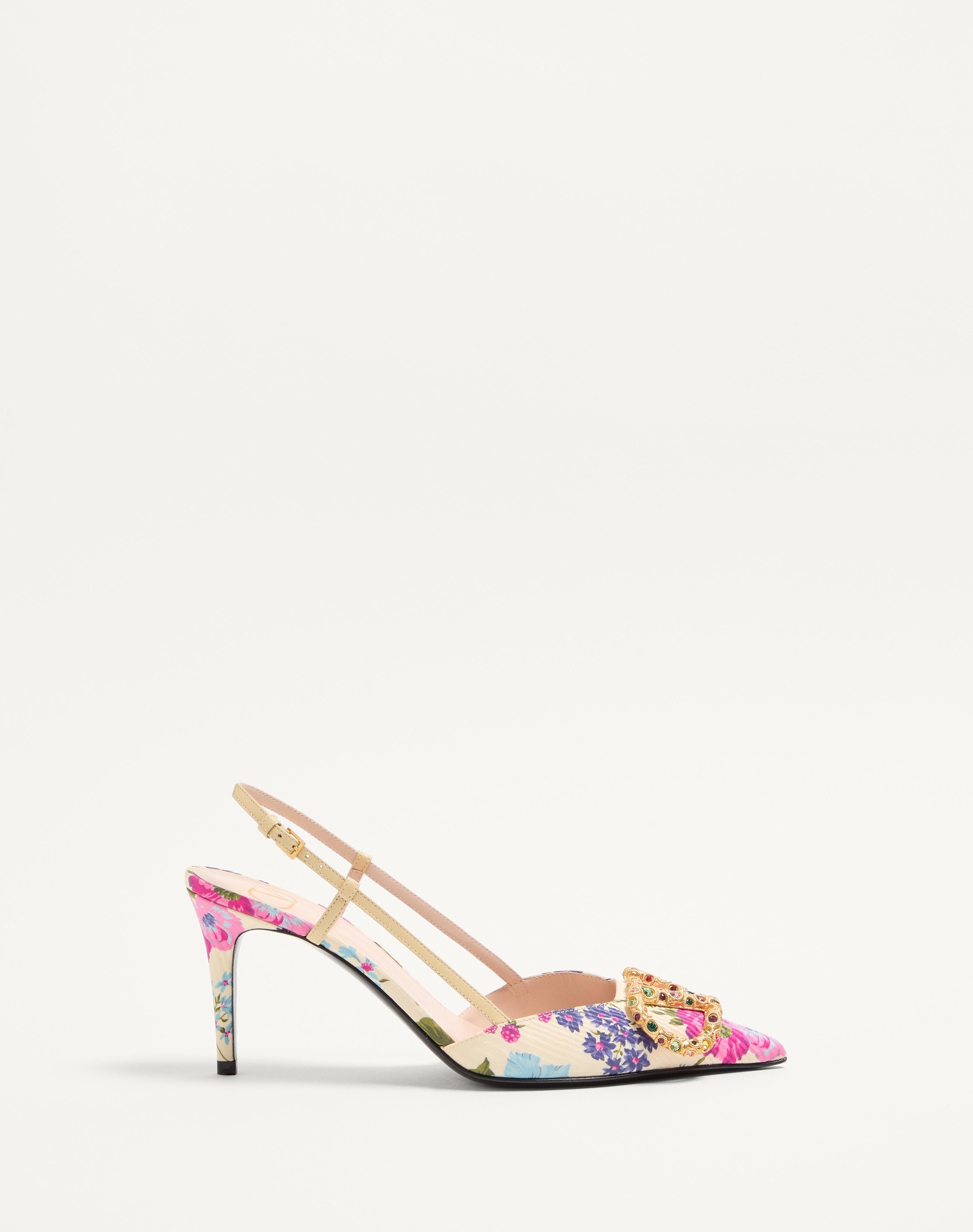 VLOGO SIGNATURE SLINGBACK PUMPS IN PAPIER FLORAL MOIRÉ FABRIC 80MM