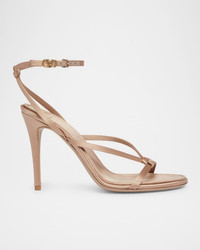 - Valentino Garavani strappy satin evening sandals - 4.00 in / 100 mm stiletto heel - Open toe - Crisscross, knotted vamp - VLogo buckle ankle strap - Lining: Goat leather - Made in Italy