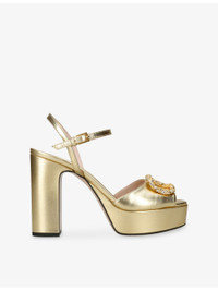 PRODUCT DETAILS - Valentino Garavani patent-leather platform sandals - 100% leather - Ankle-buckle fastening - Round open toe, branded embossment to strap, platform heel, metallic finish - Specialist leather clean - Upper: 100% leather - Lining: 100% leather - Sole: 100% leather Ref: R04551142