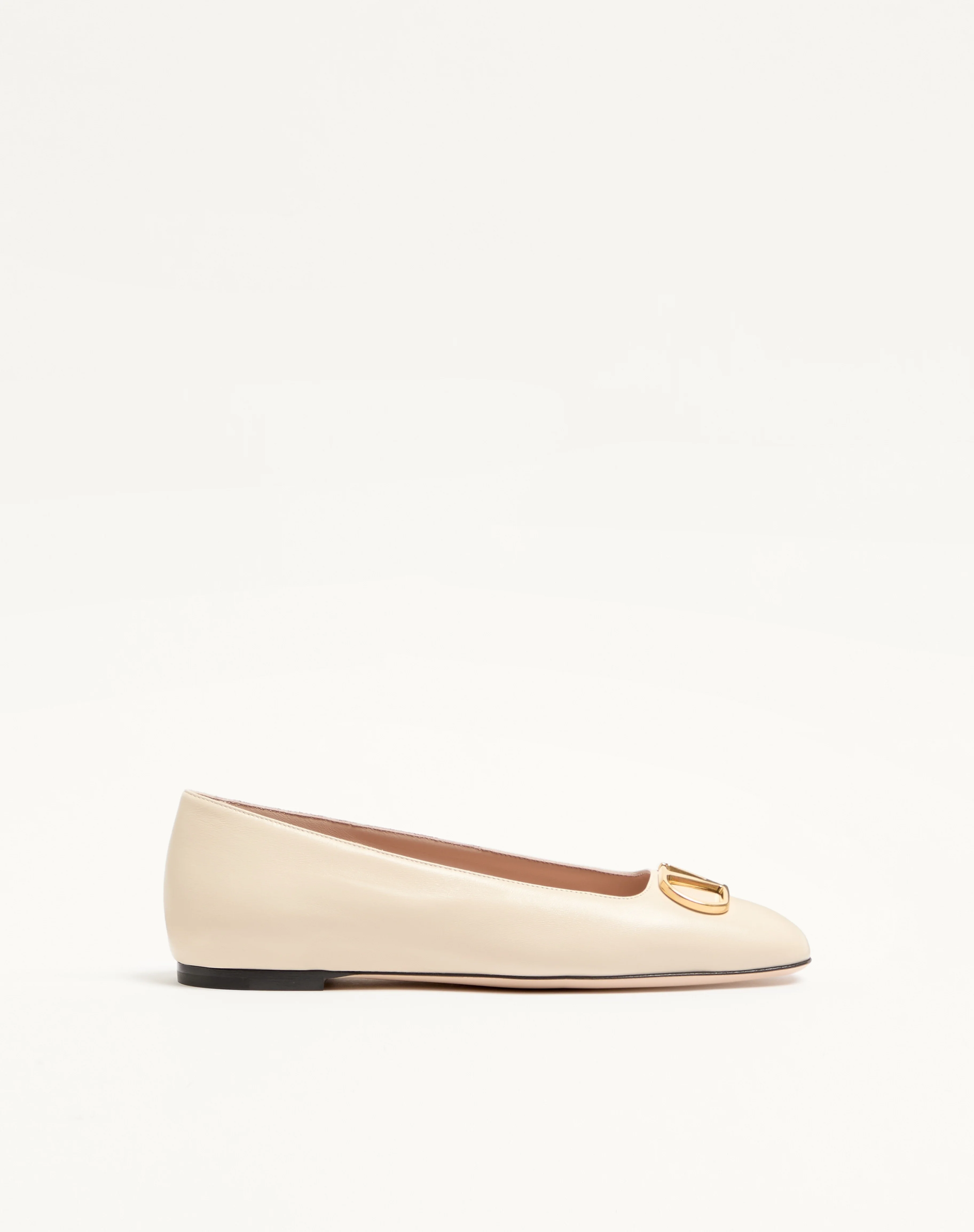 Valentino Garavani ballerina in nappa with VLogo Signature decoration - VLogo Signature accessory in antique brass-effect finish - Heel height: 5 mm /0.25 in. - Made in Italy Product code: 8W0S0PI8RRE_REN