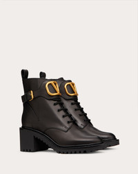 Valentino Garavani calfskin combat boot with VLogo Signature detail - Vintage-effect brass VLOGO detail - Rubber lug sole - Heel height 70mm/2.75'' with 15mm/ 0.6" platform - Made in Italy UW0S0AH7BEK0NO