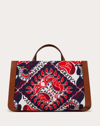 Valentino Garavani VLogo Signature canvas handbag with Archive Manifesto Bandana print, leather piping and VLogo Signature element on the front. - Antique brass-finish hardware - Protective feet - Canvas lining. Interior: slip pocket - Dimensions: W48xH32xD19 cm / W18.8xH12.5xD7.4 in. - Made in Italy Product code: WB0L02BFM_45E