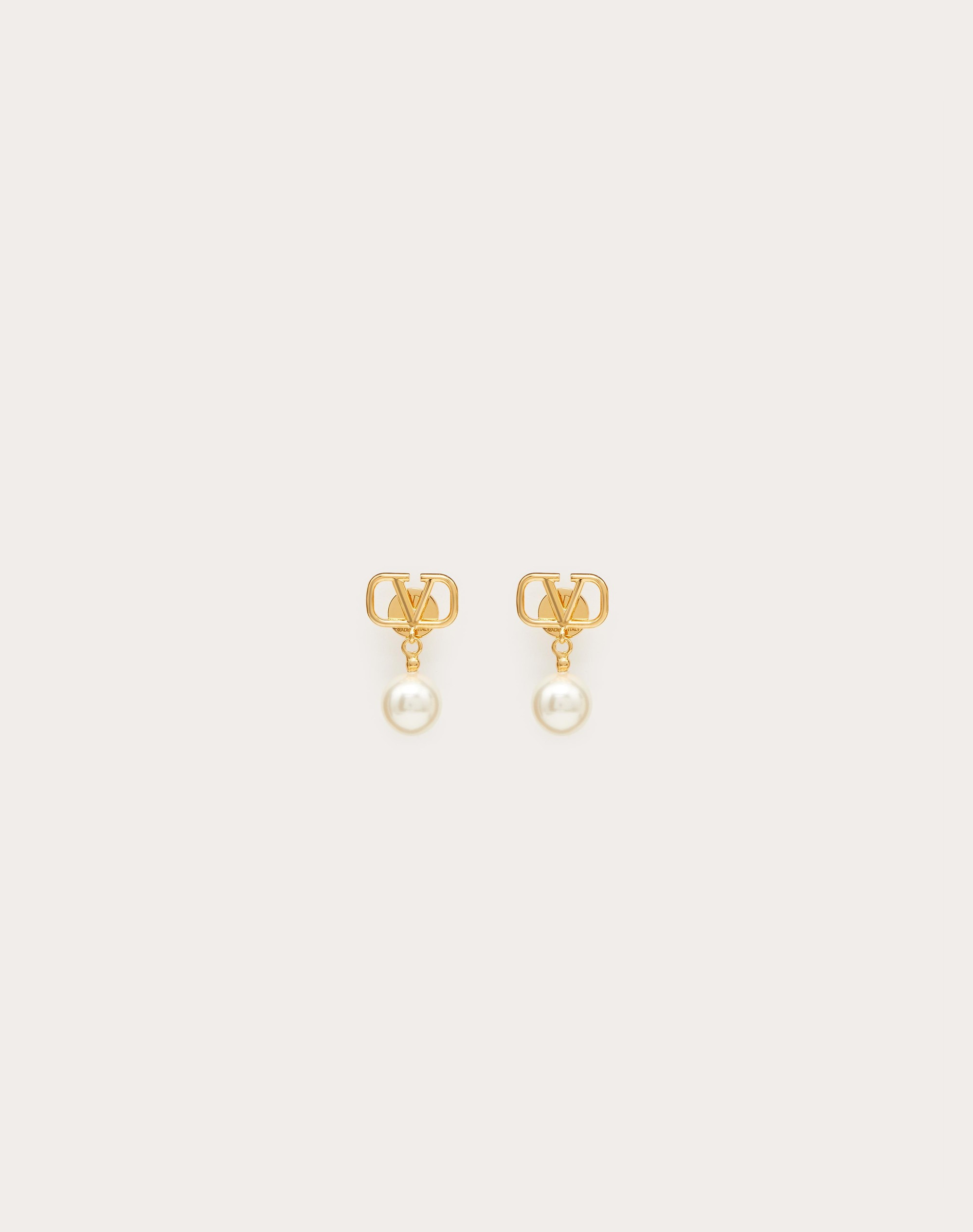 Valentino Garavani VLogo Signature metal earrings with cream Swarovski® pearls. - Gold-tone finish -Pearl dimensions: 10 mm - Logo dimensions: 15 mm - Dimensions: 2.5 cm - Butterfly fastening - Made in Italy Product code: 5W2J0E36UXM_0O3