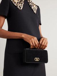 VLogo Signature embellished velvet wallet Black