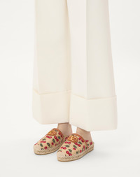 Valentino Garavani mule in synthetic raffia jacquard with Cherryfic motif, leather detail and VLogo Signature decoration - Leather patch with VLogo Signature accessory in antique brass effect finish - Rope base and rubber sole - Heel height: 25 mm / 1 in. - Made in Italy Product code: 6W0S0ME9CEC_32H