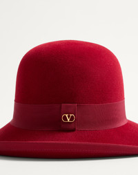 VLogo Signature hat in Lapin fabric - Fabric strap - VLogo Signature metal detail with antique brass finish - Grosgrain inner ribbon with Valentino Logo fabric label - Available in sizes XS(55)-S(56)-M(57)-L(58) - Made in Italy Product code: 7W2HE00FPMU_BPY