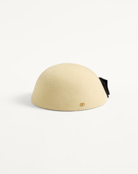 VLogo Signature Hat in Lapin Fabric With Satin Bow -Satin bow detail with customized metal VLogo Signature in antique brass finish - Internal grosgrain ribbon with Valentino Logo fabric label -Available in sizes XS (55) -S (56) -M (57) -L (58) -Made in Italy Product code: 7W2HQA02RZN_BA9