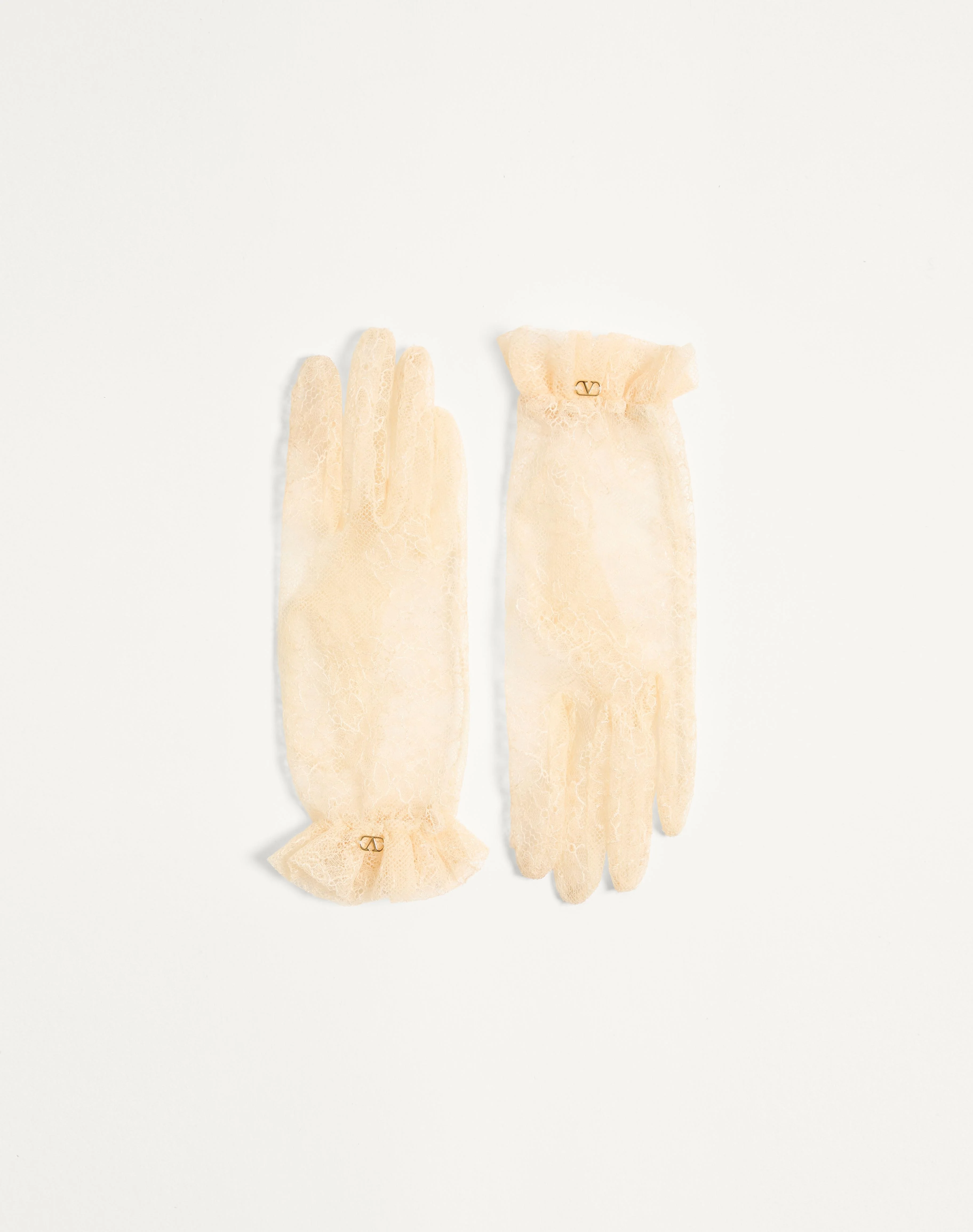 Vlogo Signature Lace Gloves - Vlogo Signature metal detail in gold-tone finish - Ruffle trim - Length: 24.5 cm / 9.6 in. - Available in sizes: 6-7-8 - Made in Italy Product code: 7W2GD00FYCC_YBA