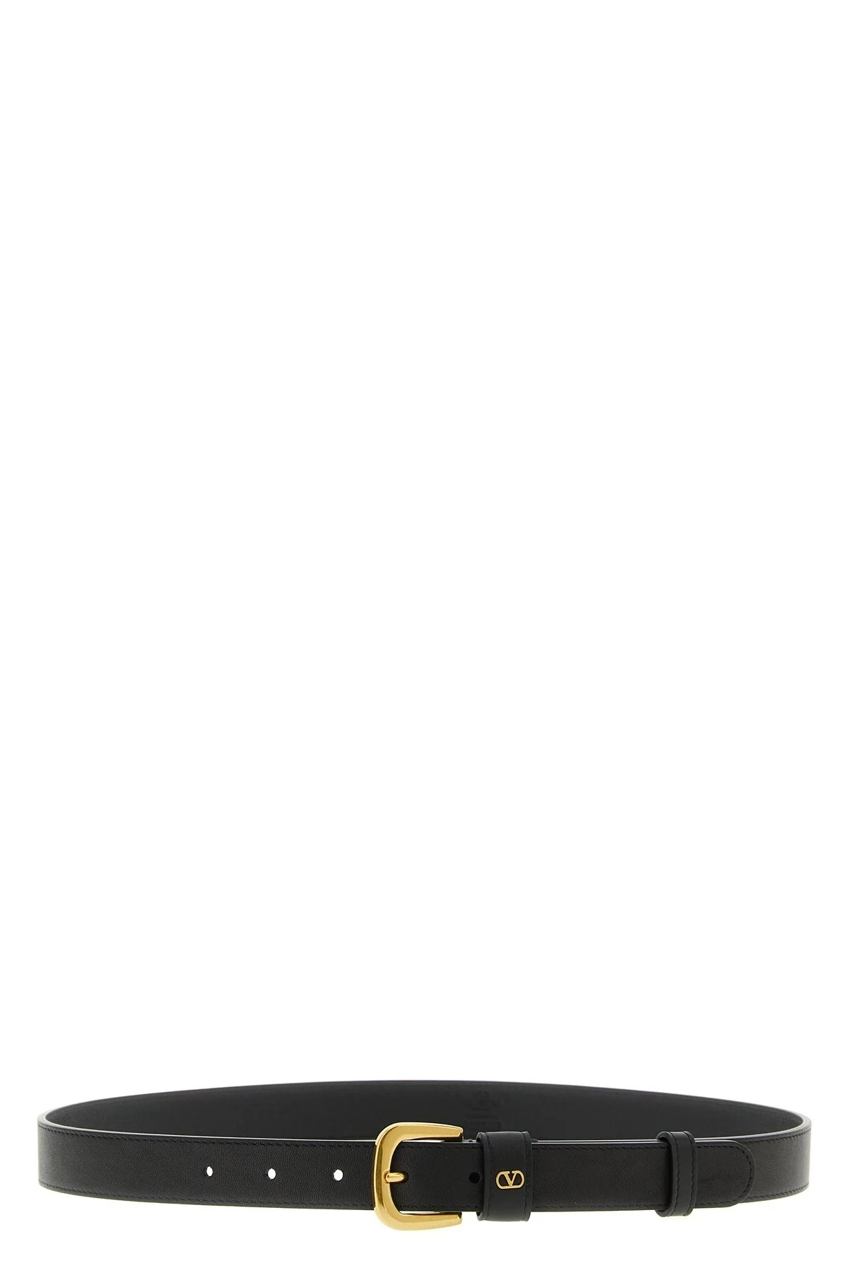 cod. W0T0SM1PPU0NO Smooth leather belt, buckle and VLogo Signature detail on the antiqued gold metal loop. Color: Black Size & Fit: H 2.5 cm Composition: 100% calfskin leather (Bos Taurus) Made in: Italy