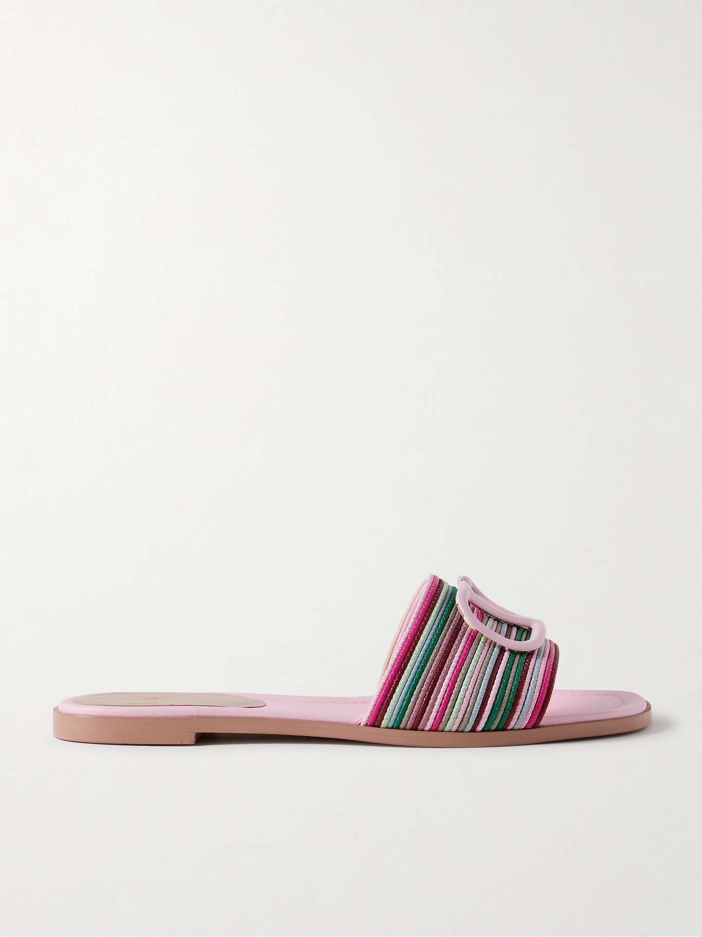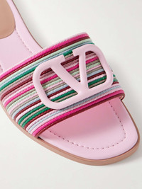 EDITORS'NOTES Valentino Garavani's slides are just as glamorous as they are comfortable, so you're guaranteed to reach for them often. They've been made in Italy from strips of colorful leather and are topped with the label's 'VLOGO' plaque in pale-pink. SIZE & FIT - Fits true to size, take your normal size - Italian sizing DETAILS & CARE - Slight heel - Multicolored leather (Sheep) - Slip on