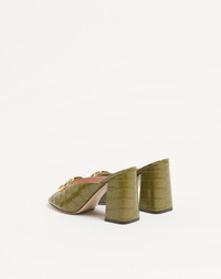 Valentino Garavani VLogo Signature Slide Sandal in crocodile-effect printed calfskin - VLogo Signature accessory with antique-effect brass finish - Block heel covered in printed calfskin - Heel height: 95 mm / 3.7 in. - Made in Italy Product code: 8W2S0NW6LUR_03D