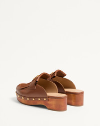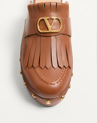 Valentino Garavani calfskin fringed clog with VLogo Signature decoration - VLogo Signature accessory in antique brass-effect finish - Welt detailed with metal rivets in antique brass-effect finish - Wooden platform and heel - Heel height 45 mm / 1.8 in. with 25 mm / 1 in. platform - Made in Italy Product code: 6W2S0KY6YHJ_N58