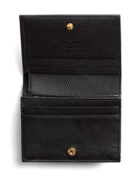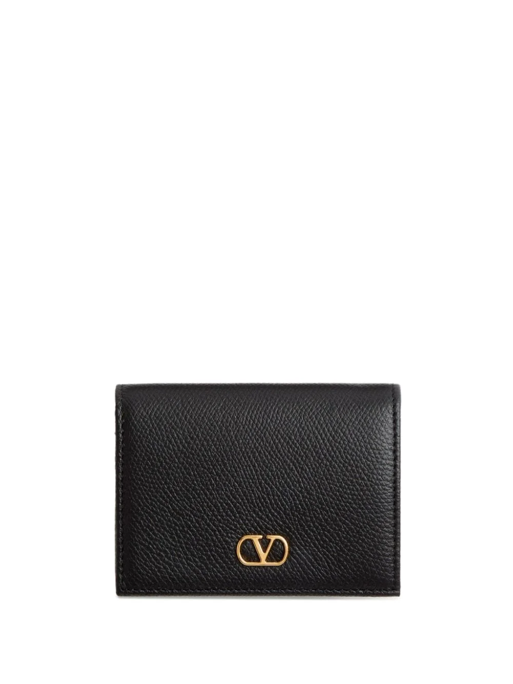 VLogo Signature wallet Highlights - Black - Calf leather - Pebbled texture - Gold-tone logo plaque - Foldover top with press-stud fastening - Internal card slots Made in Italy Composition Outer: Calf Leather 100%, Metal 100% Lining: Viscose 100%, Calf Leather 100% SIZE & FIT Measurement LENGTH 1.77 in(4.5 cm) WIDTH 1.29 in(3.3 cm)