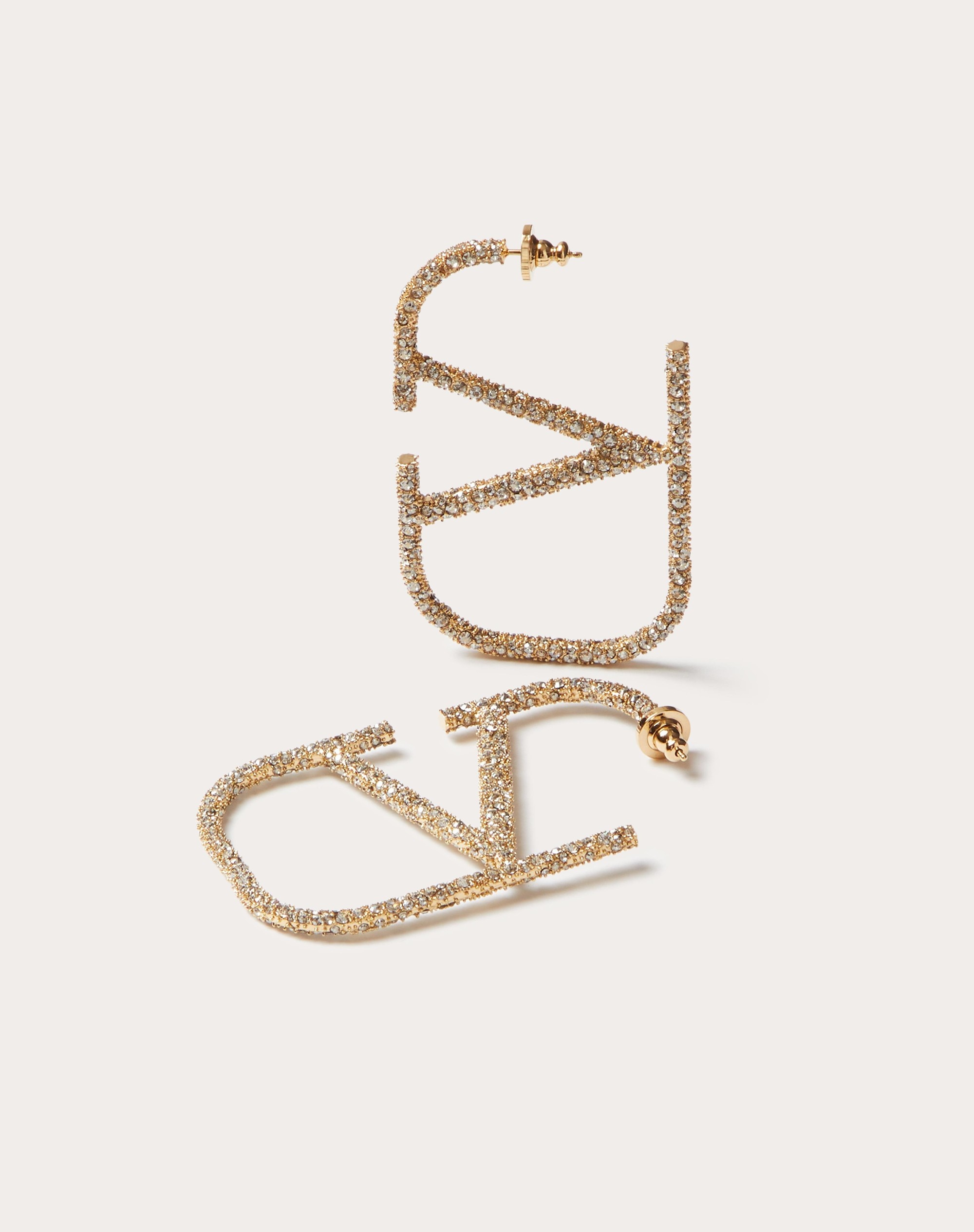 Valentino Garavani VLogo Signature Metal and Crystal Earrings - Gold finish - Dimensions: 7 cm - Butterfly fastening - Made in Italy Product code: 5W2J0E27YCW_MH5