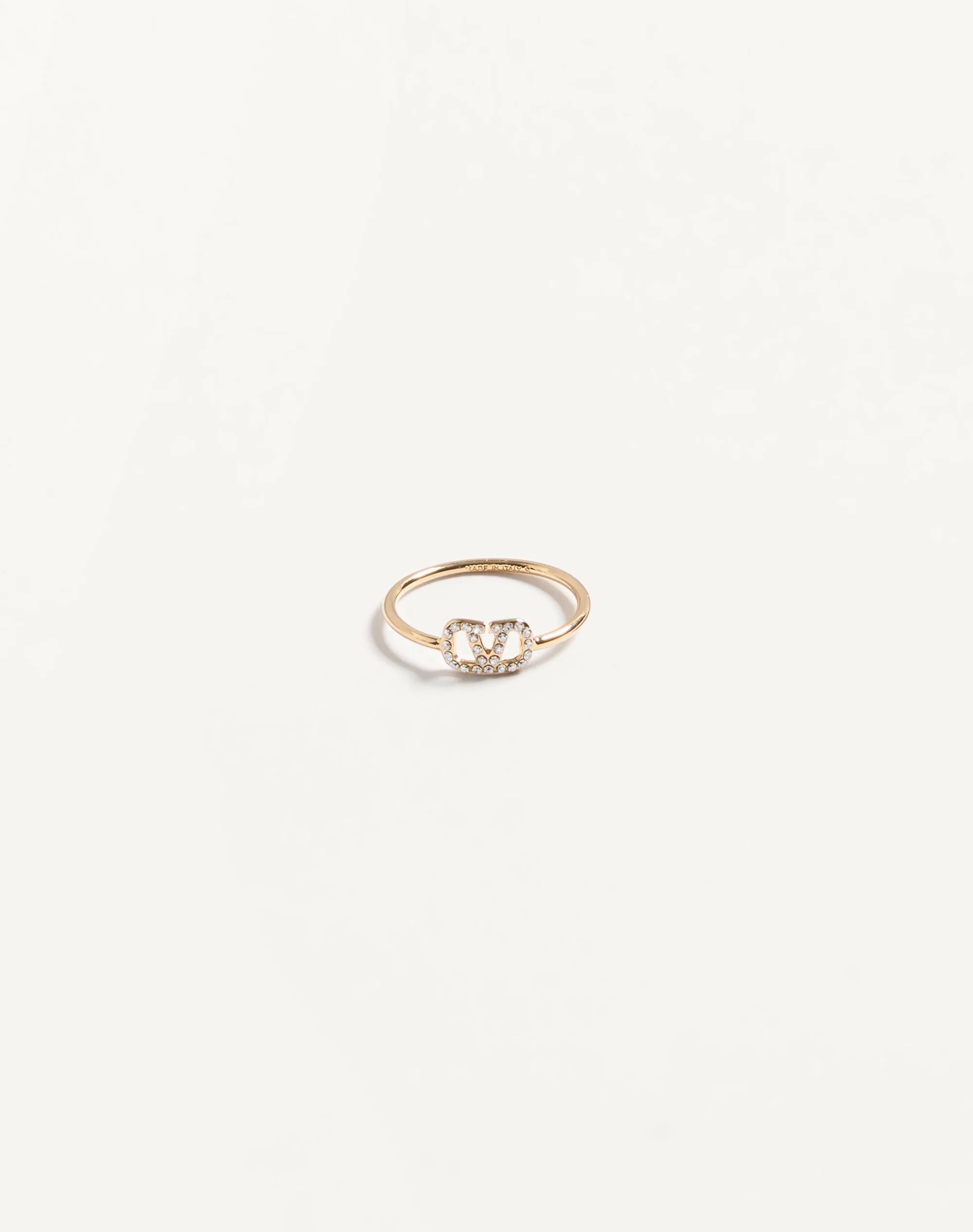 Vlogo Signature metal ring with Swarovski® crystals - 18K gold-tone finish - Height: 0.5 cm / 0.27 in. - Vlogo dimensions: 5 x 5 mm / 0.31 x 0.19 in. - Available in sizes: 9-11-13-15-17 - Made in Italy Product code: 7W2J0X03YCW_MH5