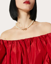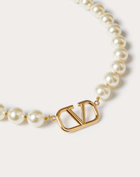 Valentino Garavani VLogo Signature metal necklace with Swarovski® crystal pearls. - Gold-tone finish - Logo dimensions: 3.8x1.3 cm - Pearl diameter: 8 mm - Length: adjustable from 40 cm to 44 cm - Spring clasp with VLogo Signature detail - Made in Italy Product code: 5W2J0P13UXM_0O3