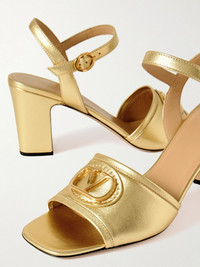 Valentino Garavani's sandals are topped with the signature 'VLogo' plaque at the open, squared toe. They're made from lustrous gold leather and have an adjustable ankle strap and sturdy 70mm heel. Wear yours with cropped jeans or midi skirts. Size & Fit - Fits true to size, take your normal size - Italian sizing Details & Care - Heel measures approximately 70mm/ 3 inches - Gold leather (Sheep) - Buckle-fastening ankle strap