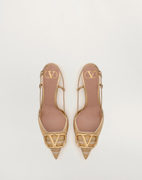 Valentino Garavani slingback pump in laminated nappa leather with Cornely embroidery, laminated nappa leather details and VLogo Signature decoration - VLogo Signature accessory in light gold-tone finish - Heel height: 80 mm / 3.2 in. - Made in Italy Product code: 6W2S0R01MNS_KUN