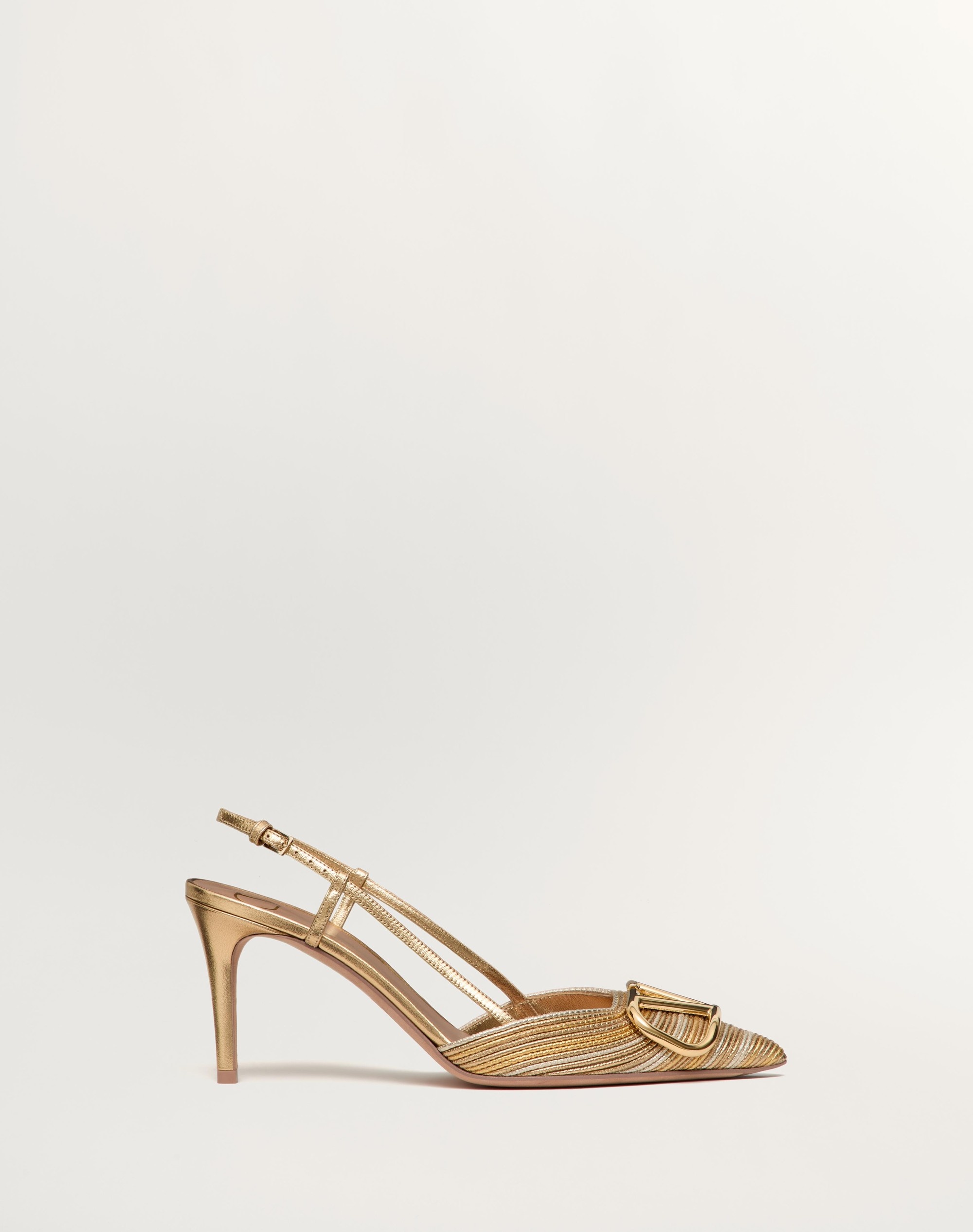 VLOGO SIGNATURE METALLIC SLINGBACK PUMPS WITH CORNELY EMBROIDERY 80MM