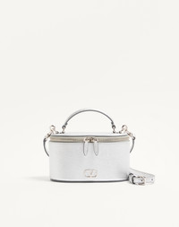 Valentino Garavani VLogo Signature mini vanity bag in laminated grainy calfskin. It can be worn over the shoulder/crossbody or carried as a handbag thanks to the handle and the adjustable and removable shoulder strap. - Palladium-finish logo and hardware - Zipper closure - Nappa leather lining. Interior: one card slot - Adjustable and removable leather shoulder strap - Shoulder strap drop length: min 52.5 cm to max 57.5 cm / min 20.7 cm to max 22.6 in. - Leather handle. Drop length: 4 cm / 1.6 in. - Dimensions: W17xH10xD9 cm / W6.7xH3.9xD3.5 in. - Made in Italy Product code: 8W2P0AX8RFY_S13
