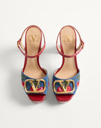 VLOGO SIGNATURE PLATFORM DENIM SANDAL WITH CHERRYFIC EMBROIDERY 115MM