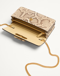 Valentino Garavani Vlogo Signature chain wallet in python. May be handheld or worn over the shoulder/crossbody thanks to the removable chain. - Magnetic closure - Antique brass-finish hardware - Two compartments divided by a zipper pocket - Nappa leather lining. Interior: eight card slots and one slip pocket - Removable chain. Chain drop length: 50 cm / 19.7 in. - Dimensions: W20xH110.5xD4 cm / W7.9xH4.1xD1.6 in. - Made in Italy This product contains magnets. Please consider if this product will be worn within 15 cm from any implanted device. Any concerns please contact your healthcare professional. Product code: 6W2P0S93BIN_246