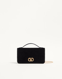 VLOGO SIGNATURE VELVET CHAIN WALLET WITH JEWEL LOGO