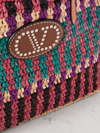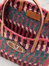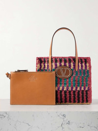 EDITORS'NOTES Valentino Garavani's 'VLogo' tote imbues eclectic, bohemian charm. Crocheted from colorful raffia, it has a structured, unlined design with leather trims, including top handles and a studded applique. There's enough space for your wallet, phone and sunglasses, as well as keys in the zipped pouch. SIZE & FIT This item’s measurements are: - Min. Strap Length: 121cm / 47.6in - Handle Drop: 12cm / 4.7in - Depth: 12cm / 4.7in - Handle Length: 11cm / 4.3in - Max. Strap Length: 130cm / 51.2in - Height: 19cm / 7.5in - Width: 23cm / 9.1in DETAILS & CARE - Multicolored raffia, brown leather - Top handles, detachable adjustable shoulder strap - Detachable internal zipped pouch - Unlined - Open top - Comes with a dust bag